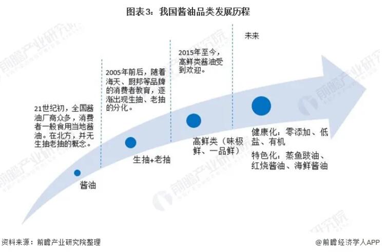 近年來,隨著消費(fèi)者需求的變化以及制造工藝的進(jìn)步,我國醬油品類也在不斷變化。醬油由原來的普通醬油衍化出生抽和老抽,再慢慢發(fā)展到目前市面上的多品類醬油。隨著消費(fèi)者飲食消費(fèi)升級(jí)加速,我國醬油品類將逐漸朝健康化特色化延伸,一些品質(zhì)化、高端化的醬油產(chǎn)品將慢慢出現(xiàn)在消費(fèi)者的餐桌上。