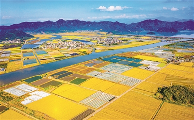 沉甸甸的稻穗隨風(fēng)起舞,金色的田野一望無(wú)垠。近日,寧海縣長(zhǎng)街鎮(zhèn)車岙港下水庫(kù)下游的岙洞村廣袤的農(nóng)田與藍(lán)天映襯下的河網(wǎng),構(gòu)成了一幅秋日豐收?qǐng)D。長(zhǎng)街鎮(zhèn)目前擁有3.5萬(wàn)畝稻田,是該縣重要的產(chǎn)糧區(qū)和我市最大的雜交水稻制種基地。