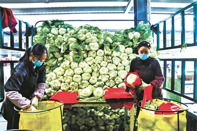 昨天下午,在寧波農(nóng)副產(chǎn)品物流中心下屬蔬菜批發(fā)市場,經(jīng)營戶對貨車上的蔬菜進(jìn)行分裝。據(jù)了解,為應(yīng)對本輪寒潮,物流中心已啟動市場保供應(yīng)急預(yù)案,穩(wěn)住蔬菜供應(yīng)鏈,確保市場供應(yīng)充足。