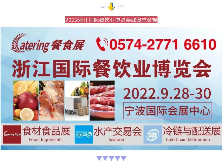 2022浙江國際餐飲業(yè)博覽會由食材食品、水產(chǎn)貿(mào)易、冷鏈配送三大版塊組成,屆時,將有來自國內(nèi)外400+展商,以浙江為主來自全國的20000+專業(yè)觀眾(買家)包括酒店/餐飲機構(gòu)、生產(chǎn)加工貿(mào)易企業(yè)、生鮮超市、連鎖企業(yè)、社區(qū)配送、電子商務(wù)交易平臺、冷鏈配送等專業(yè)人士參會交流洽談貿(mào)易合作。同期舉行多場高端配套活動,助力展會和與會人士取得豐碩成果。