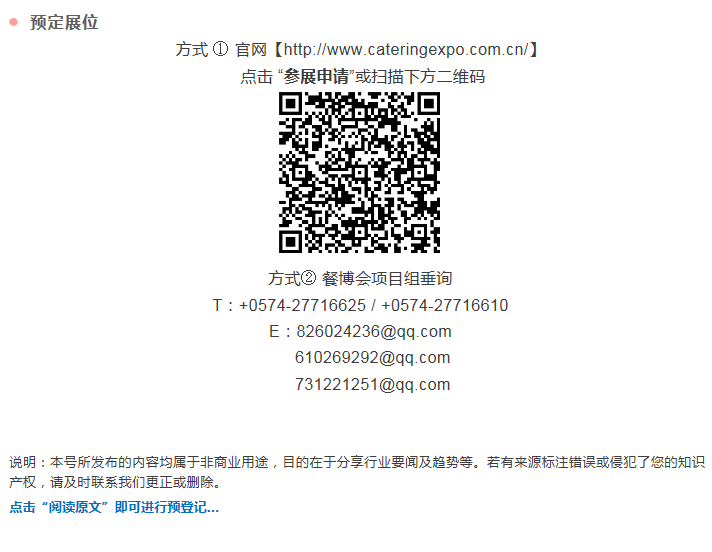 浙江餐博會預(yù)登記報(bào)名通道現(xiàn)已全面開啟!快來領(lǐng)取你的專屬福利吧!