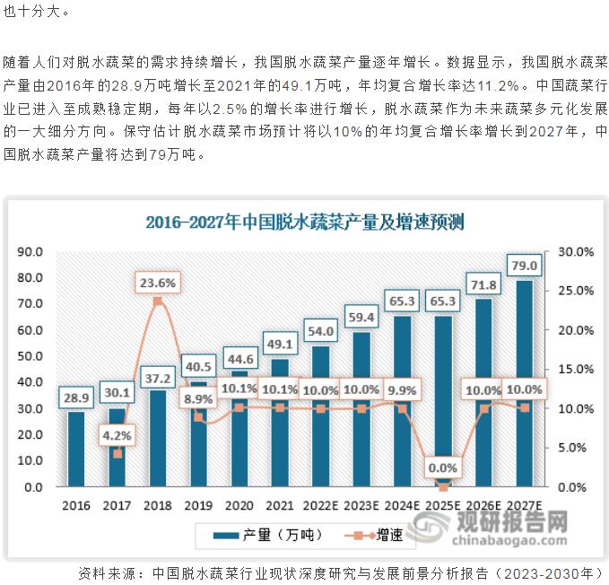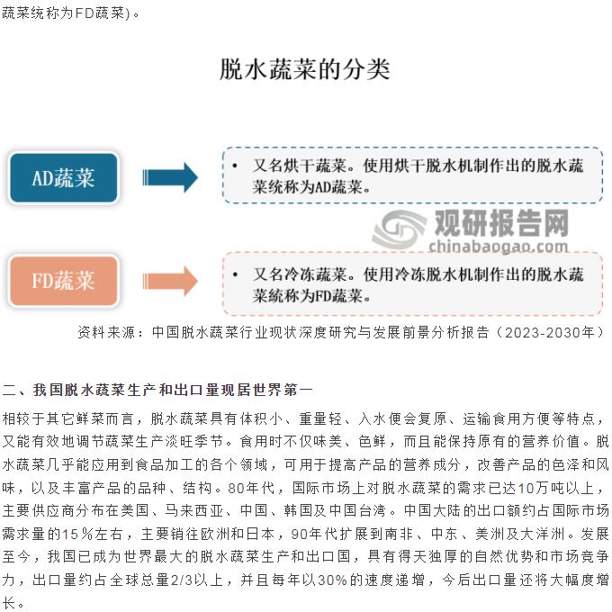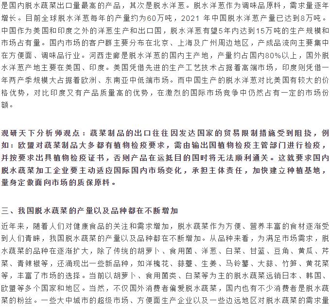 行業(yè)資訊 | 脫水蔬菜產(chǎn)量逐年上升,品種日漸豐富 我國已成全球第一大生產(chǎn)和出口國