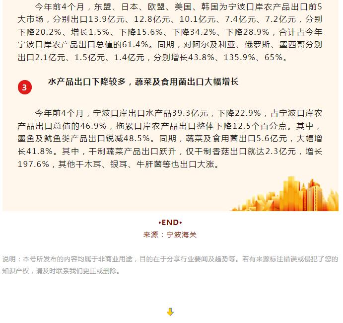 行業(yè)資訊 | 前4個(gè)月寧波口岸農(nóng)產(chǎn)品出口83.8億元 蔬菜及食用菌成出口新亮點(diǎn)