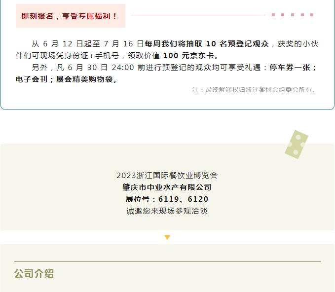 2023展商推介 | 肇慶市中業(yè)水產(chǎn)有限公司邀您相約浙江餐博會(huì)