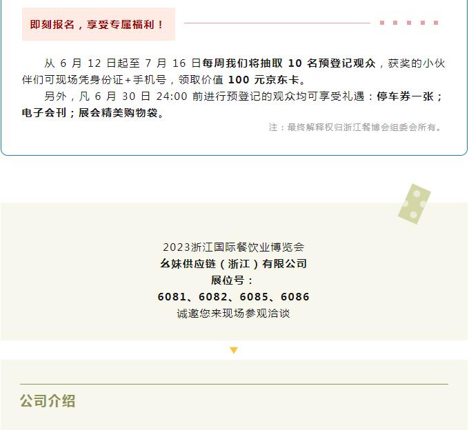 2023展商推介 | 幺妹供應(yīng)鏈(浙江)有限公司邀您相約浙江餐博會