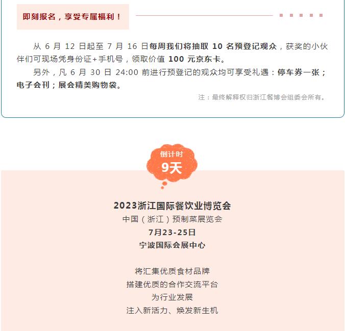 浙江餐博會預(yù)登記報名通道現(xiàn)已全面開啟!快來領(lǐng)取你的專屬福利吧!