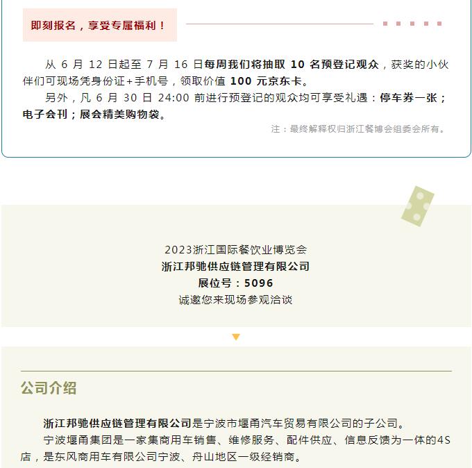 2023展商推介 | 浙江邦馳供應鏈管理有限公司邀您相約浙江餐博會
