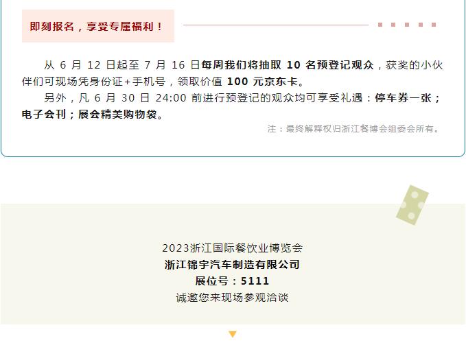 2023展商推介 | 浙江錦宇汽車制造有限公司邀您相約浙江餐博會(huì)