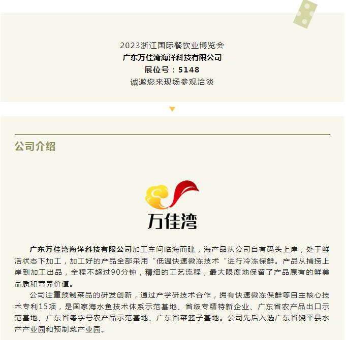 2023展商推介 | 廣東萬佳灣海洋科技有限公司邀您相約浙江餐博會