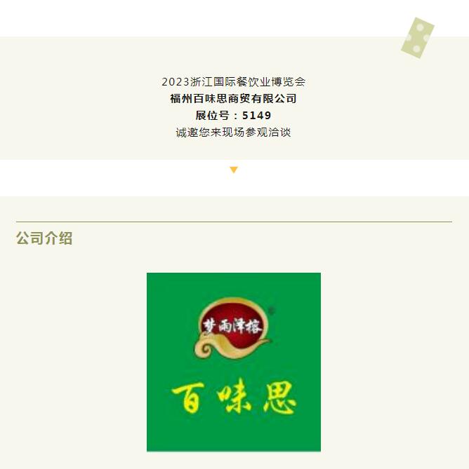 2023展商推介 | 福州百味思商貿(mào)有限公司邀您相約浙江餐博會