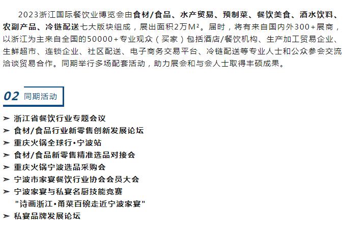 亮點(diǎn)搶先看 | 2023浙江國際餐飲業(yè)博覽會 中國(浙江)預(yù)制菜展覽會