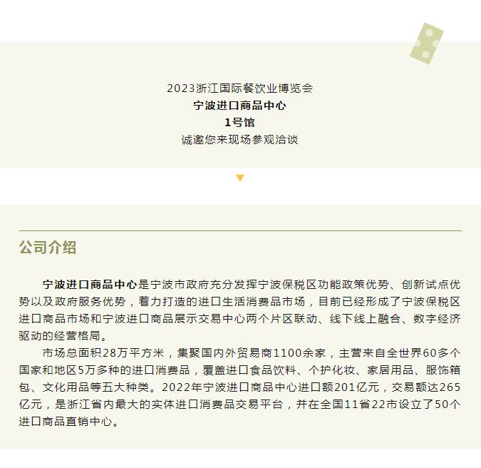 2023展商推介 | 寧波進(jìn)口商品中心邀您相約浙江餐博會(huì)