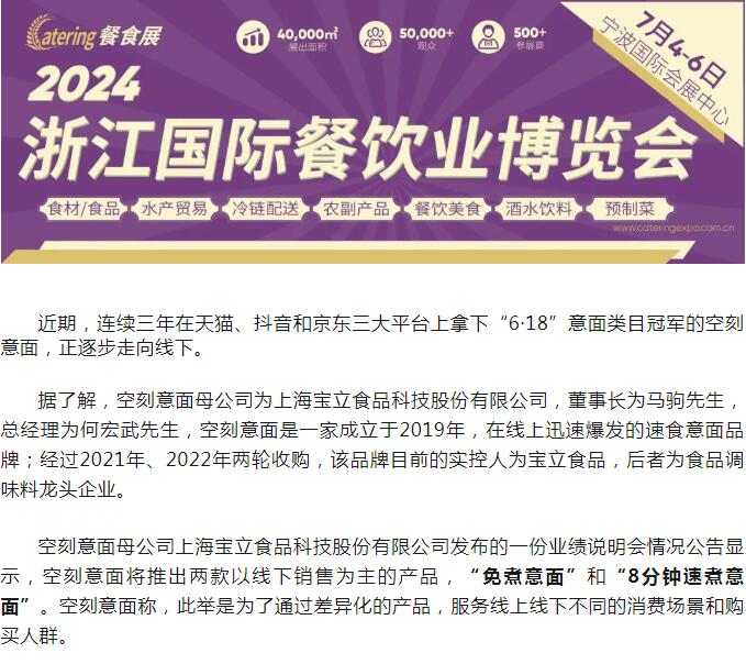 電商意面類目領(lǐng)跑者“空刻意面”正逐步走向線下